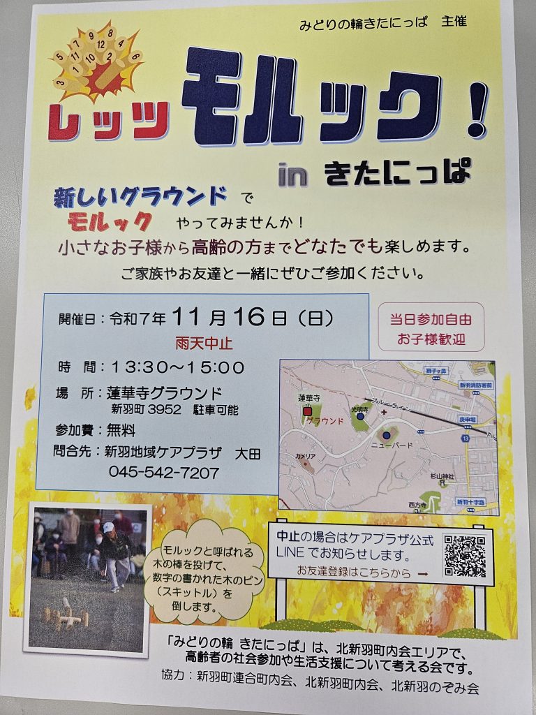 さてさて先日、北新羽町内会エリアの「みどりの輪きたにっぱ」主催のモルック大会が開催されました!毎年ニューバードからも参加させていただいております。今回の開催場所は近隣にあります、蓮華寺(れんげじ)のグラウンドです。