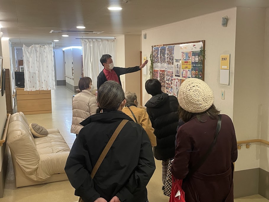 さて、2週間前の3月14日、ご近所の新吉田地域ケアプラザ様・介護老人保健施設カメリア様の共催による施設見学会がニューバードで開催されました。