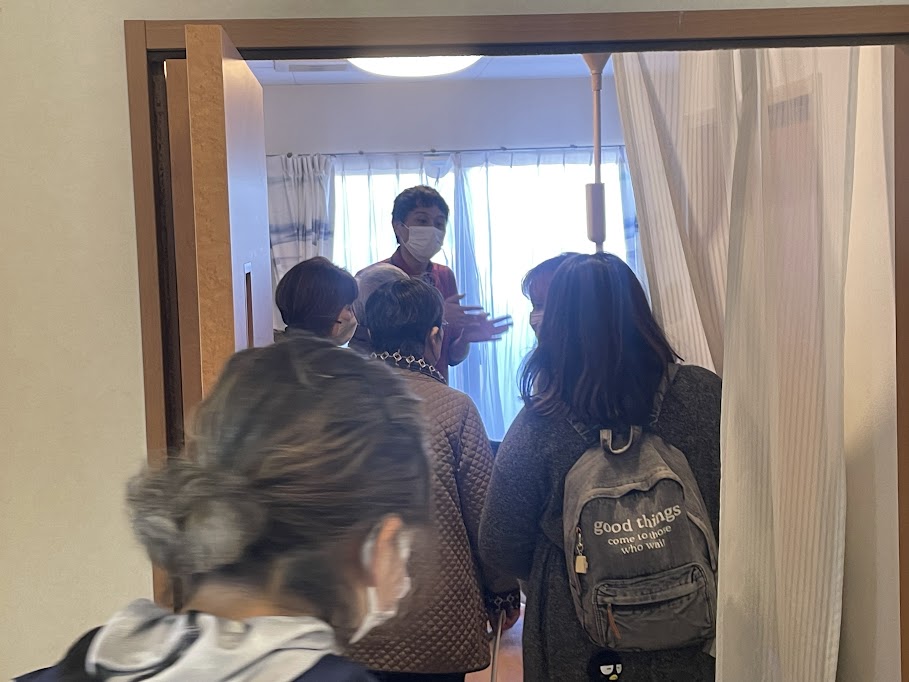 最後は各フロアの介護課長が施設の中をご案内。あるユニットでは、ご入居者(営業部長!?)が直々に居室を案内されていました。