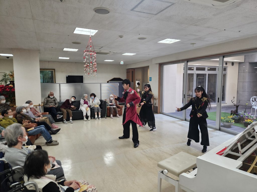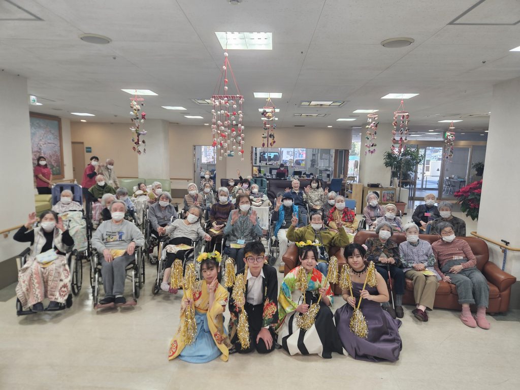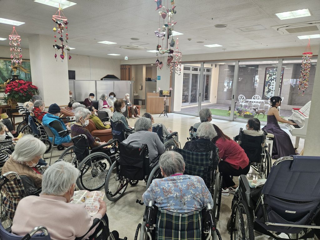 終了後、参加されたご家族より「私あのダンスも好きなのよ」「ドビュッシーやベートーヴェンが聴けるなんて感激」とのお言葉をいただきました。ピアノにダンスに素敵な衣装…魅力が溢れています(^^)/ 最後には皆さんで記念撮影♪過去最多の47名のご入居者の皆さんが参加されました。ファンがどんどん増えています(^^)
