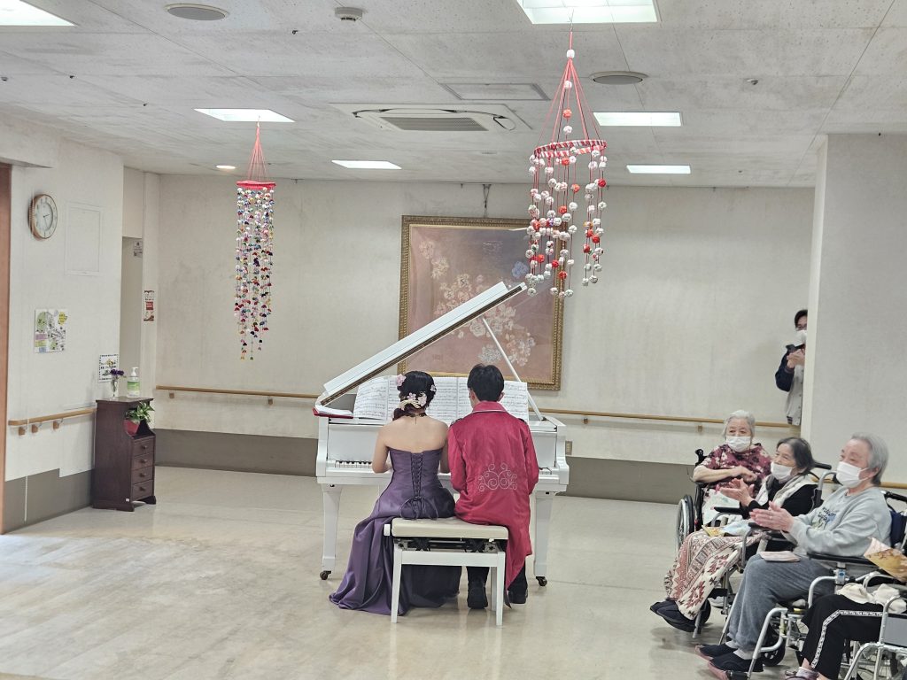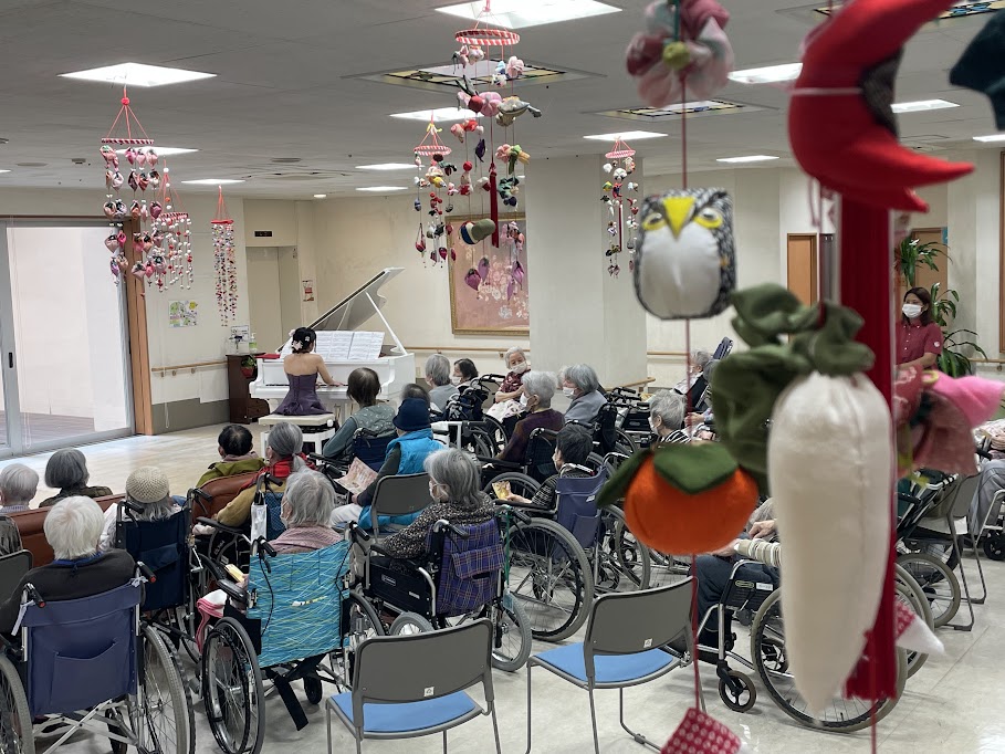 実は、「吊るし雛祭り」は一昨年までニューバードで生活されていた ”Kさん” がお元気だった頃に立ち上げた活動だったんです! 更に毎回素敵な演奏を聴かせてくれる『竹の子音楽隊』の姉弟ピアニストは、 その”Kさん” の曾孫さんなんです!! Kさんも今回参加された皆さんと一緒に、曾孫達の成長に目を細め楽しんでおられたことでしょう・・・