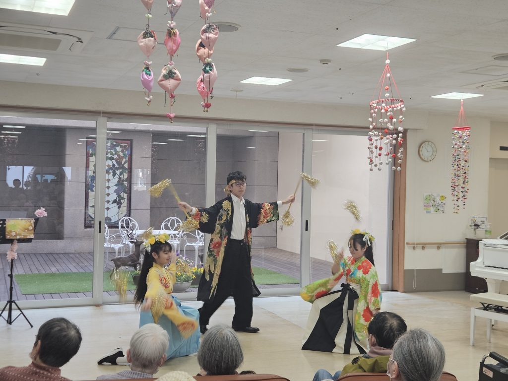 先日ブログでもお伝えした歌の会に続き、3月30日には「竹の子音楽隊&ダンサーズ」の皆様にお越しいただきました。もうすっかりお馴染みですね(^^)