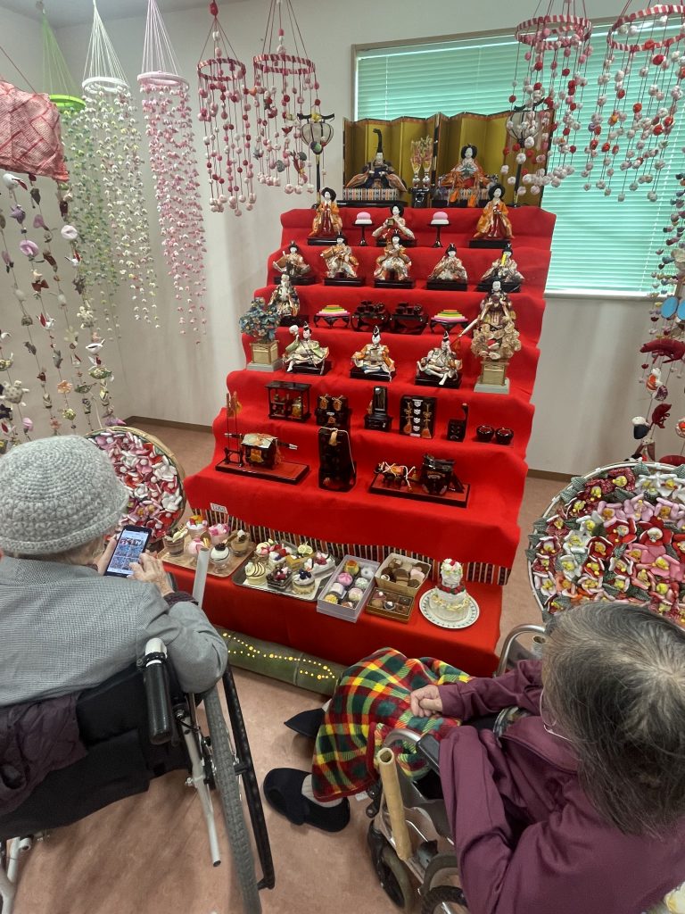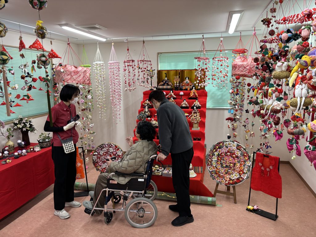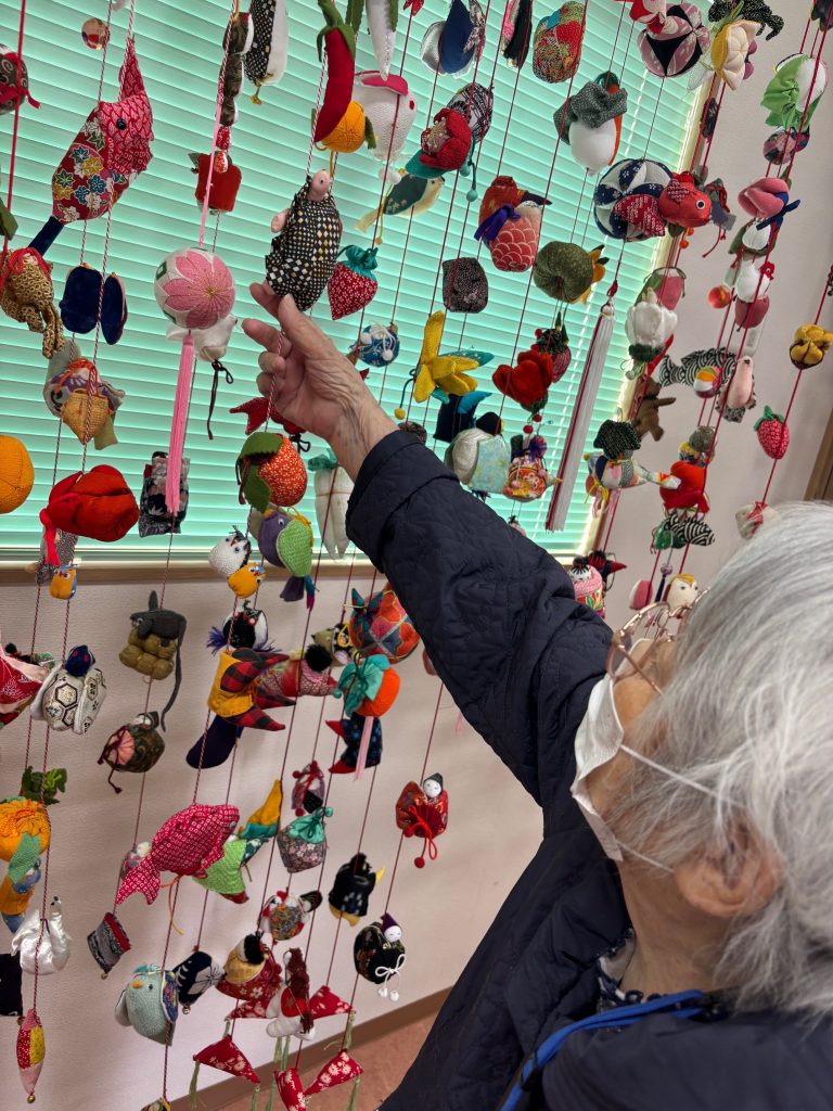「つるし雛祭り」は「春の訪れ」を感じるイベントで、ニューバードからも毎年お邪魔していたのですが、残念ながら昨年の開催で最後となってしまったんです。ただ、私達職員にとっても沢山の思い出があり、これからも沢山の方々に楽しんで頂きたいとの思いから、これらの「吊るし雛」を譲り受け施設内で飾らせて頂くことにしました。