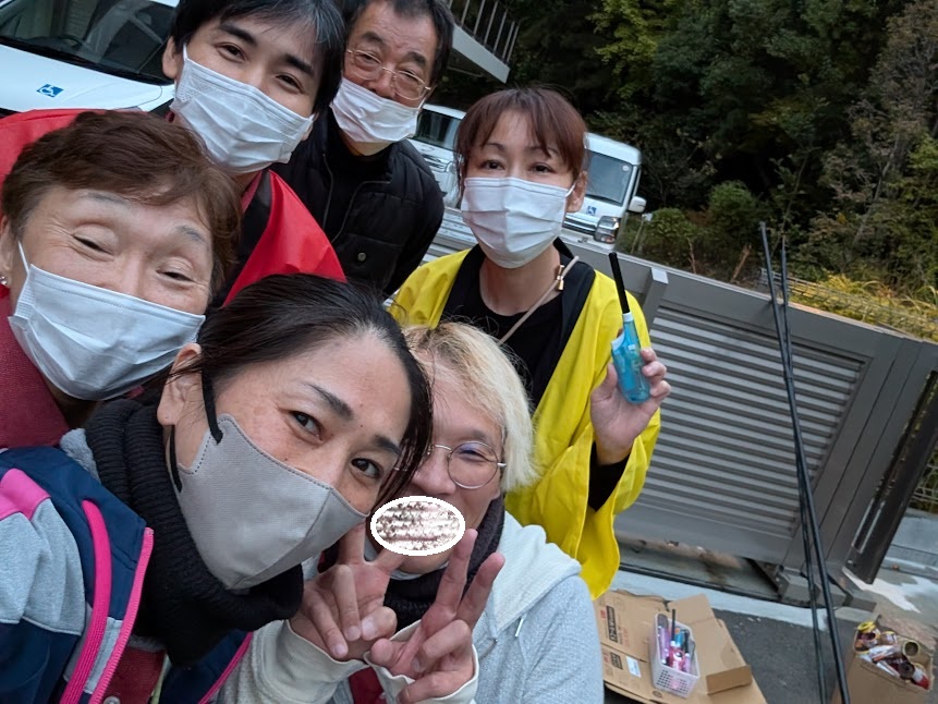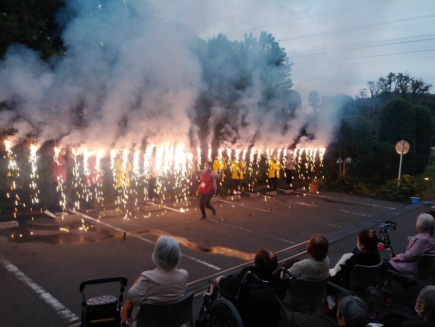 式典、お食事と続いてラストは花火。面会者や業者の方々にもご協力いただきスペース確保と早々に準備が整いました。
