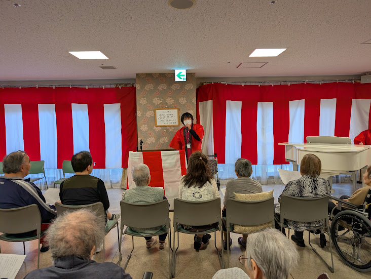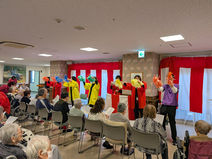 獅子ケ谷にゆかりあるご利用者が作詞された「ニューバードの歌」お祝いイベントに参加できた職員全員で披露。改めて歴史を学びました。