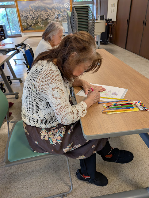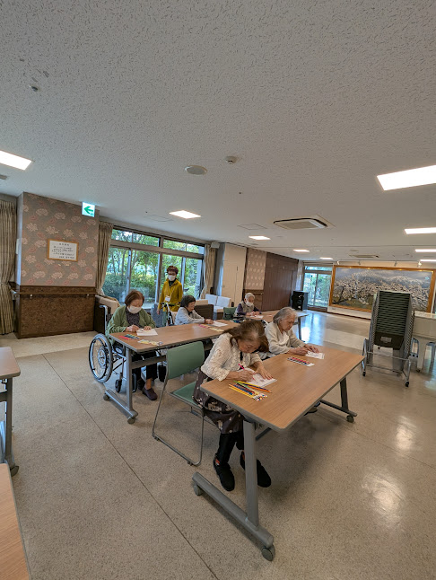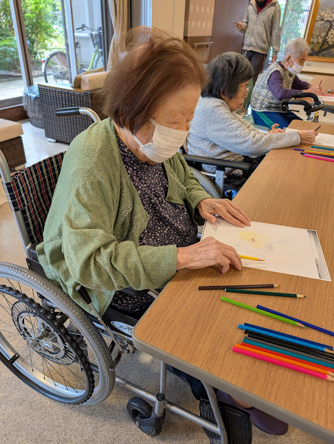 月一回の割合で開催中の塗り絵教室。地域の方々のボランティアに支えられ開催できています。好きなように塗る時と先生に教えを請いながら塗る時とは熱の入り方が違うようで。