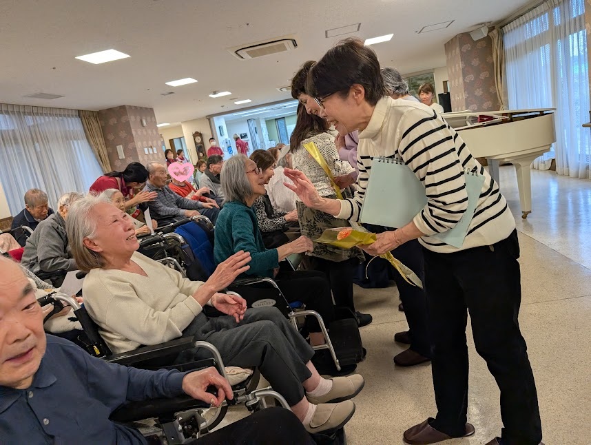 手をかざすと言えば握手会も大人気で。小さな子供たちが握手をする為に足を運んで来てくれている訳ではないのですが。歌や踊りの披露の後に握手会。楽しみにしているのは利用者だけでなく実は職員も心待ちにしていたりします。