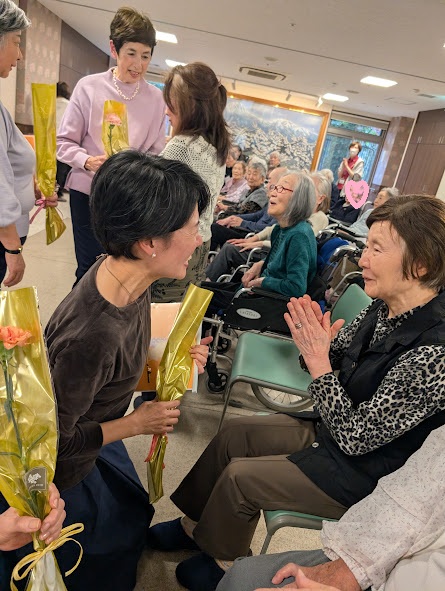 色々歌っていただいた合唱団の方々へささやかなお花をプレゼント。花は咲く時期を選ぶのか。技術が花を咲かすのか。子から母へ送るイメージのカーネーション。親世代が子世代へ送る姿をみてとても新鮮でした。