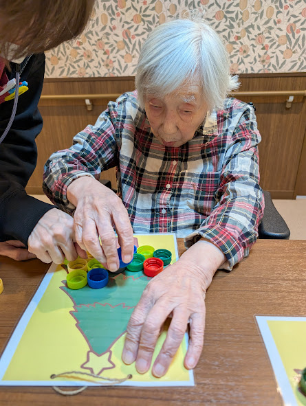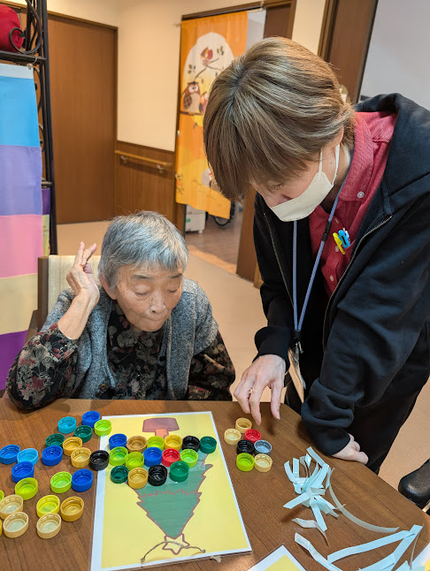 手作業レクが始まって気になる事と言えばペットボトルのふたの多彩な色。本当にいろんな色が使われているんだなと思います。