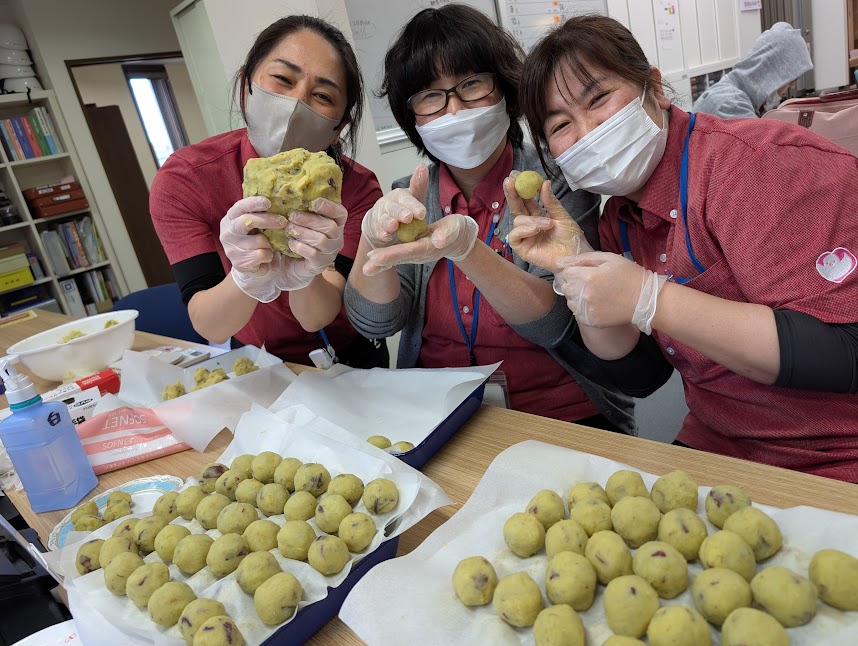 先日のいも掘りから今回は実食。スイーツ女子がすいーとぽてと味のイモ団子を作成しました。