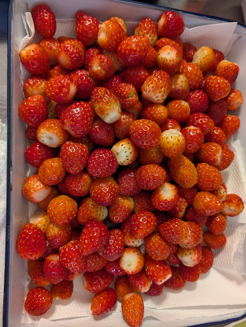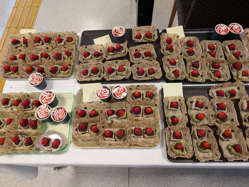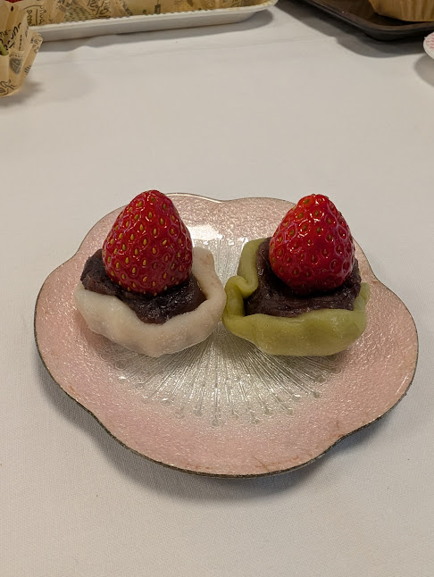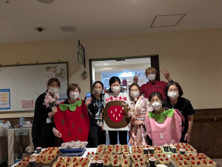今回の胃袋ガッチリイベントは「今年もいちご大福を食べましょう」です。毎回の事ながらあんこは人気。くだものも人気。手を変え品を変え美味しさと楽しさを演出。利用者とともに職員たちも最大限愉しむ。