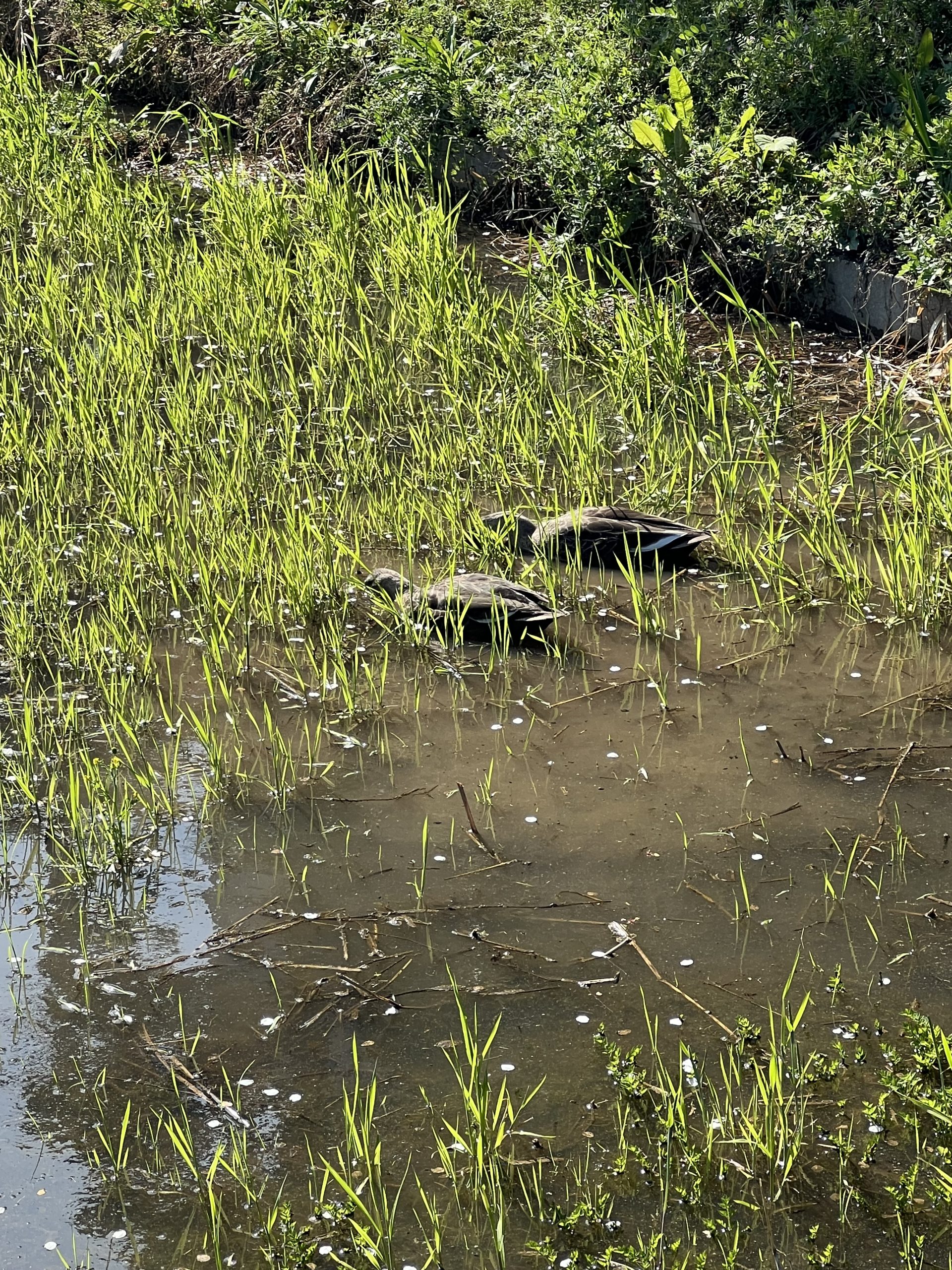 つくしも伸びてさくらも満開。気候が良くて気温が良くて満開のタイミングは限られてしまうので行ける人はみんなでお花見。毎年お越しのカモさんも春の水辺を楽しんでいました。