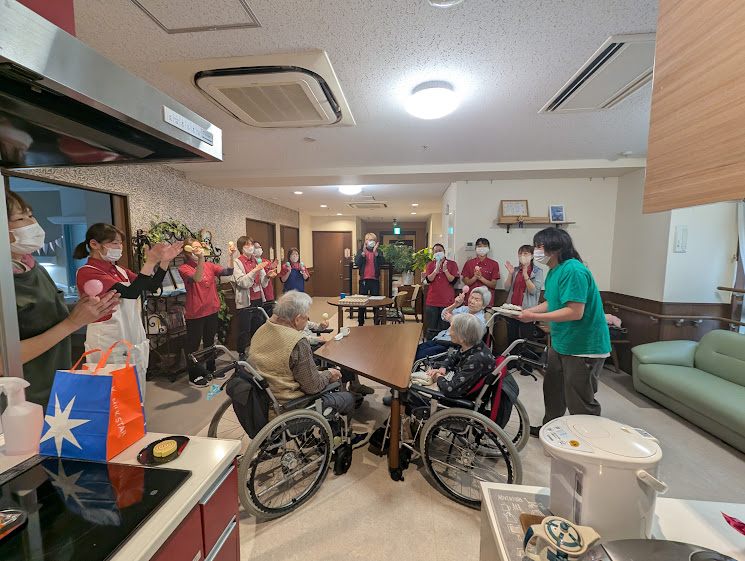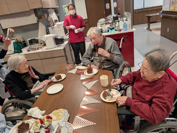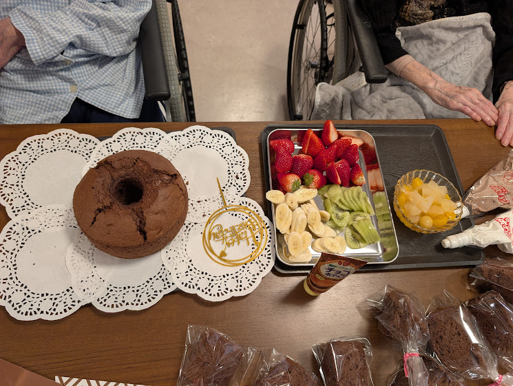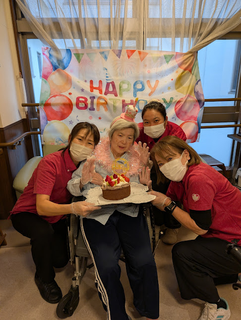 ユニット内でのお誕生日イベントもありました。いくつになってもお誕生日は嬉しいもので。今回は3名の誕生日をみんなで手作りケーキとともにお祝いしました。