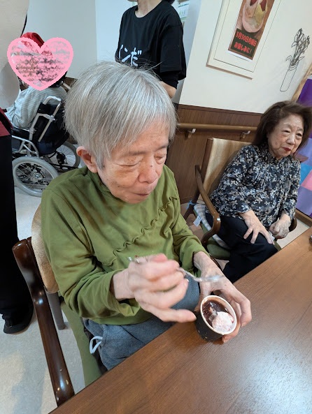 各ユニットを訪問していく形で提供。笑う利用者や驚く利用者。様々色々でしたが美味しい物を食べながら実にほっこりとした様子でした。